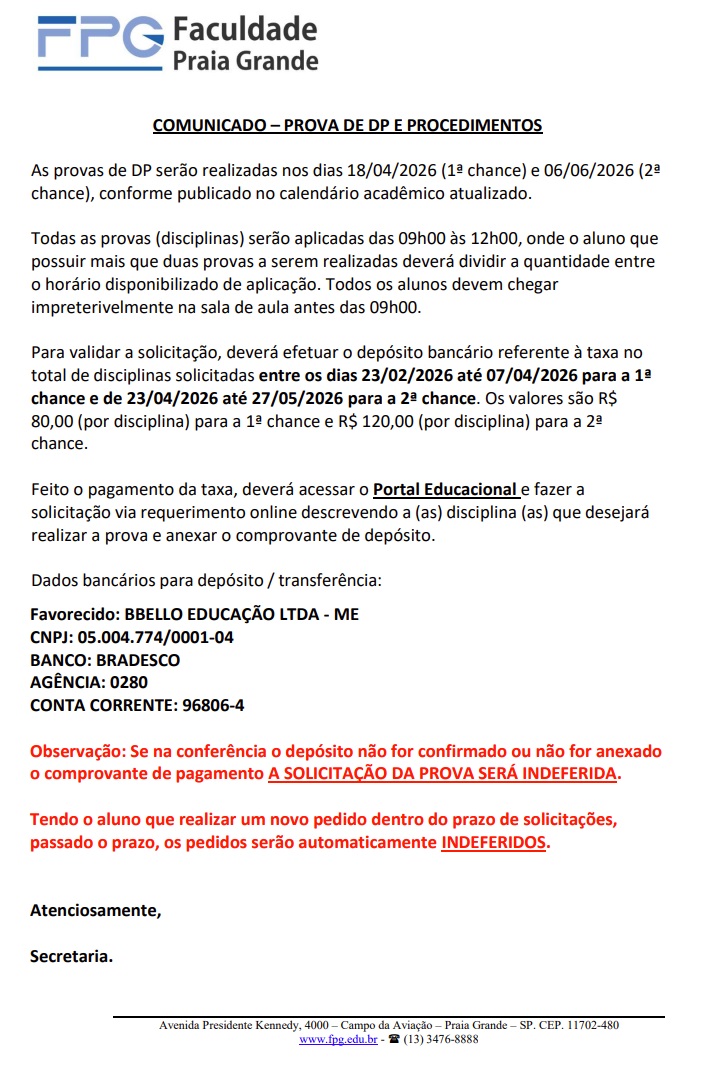 Comunicado Prova de DP 2026/1